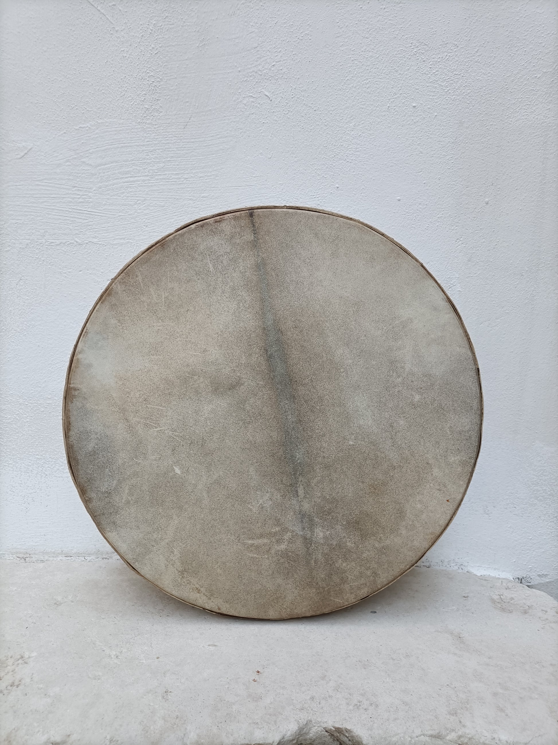 Introducing 'Conchiglia', that in Italian means Shell, a unique piece from our Handcrafted Art Series. This 56 cm drum (24") is a masterpiece, hand-carved by the young artist from Puglia "Valeria de Stena". Echoing the voice of the sea, this frame drum features tiny seashells embedded in a delicately hand-carved wooden frame. The drum is adorned with premium organic goat skin, hand-tanned in Puglia using traditional methods that have been passed down through generations, imbuing the instrument with an ancient, mystical quality. A poetic object that blends sound and Mediterranean memory. Crafted as an art piece, it remains playable—but its real strength lies in its visual beauty and connection to timeless traditions.
